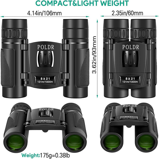 POLDR 8x21 Small Compact Lightweight Binoculars for Adults Kids Bird Watching Traveling Sightseeing.Mini Pocket Folding Binoculars for Concert Theater Opera