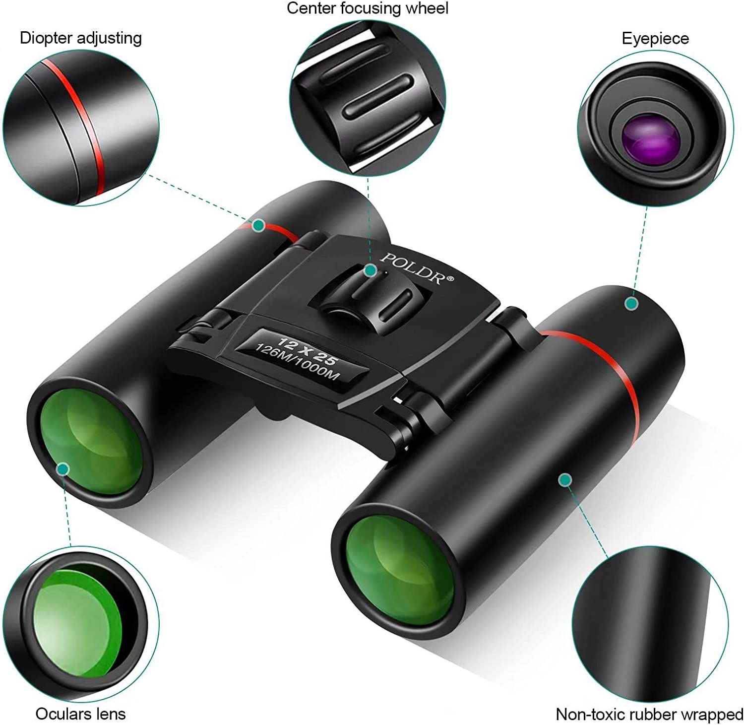 - Fast Focus - Easy to Use: Pocket size binoculars have adjustable pupil spacing, fit for 99% people(men/women/kids). Center wheel and diopter adjustment is smooth and come with detailed operation guides, even a novice can quickly focus.