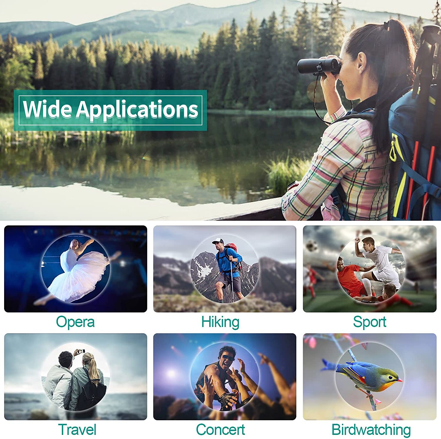- Wide Range of Uses: Lightweight binoculars with portable neck strap is great for opera, theater, concert, touring shows, sporting even, travel, cruise, hiking, camping, bird watching etc..Too easy to carry so you won't miss any details.